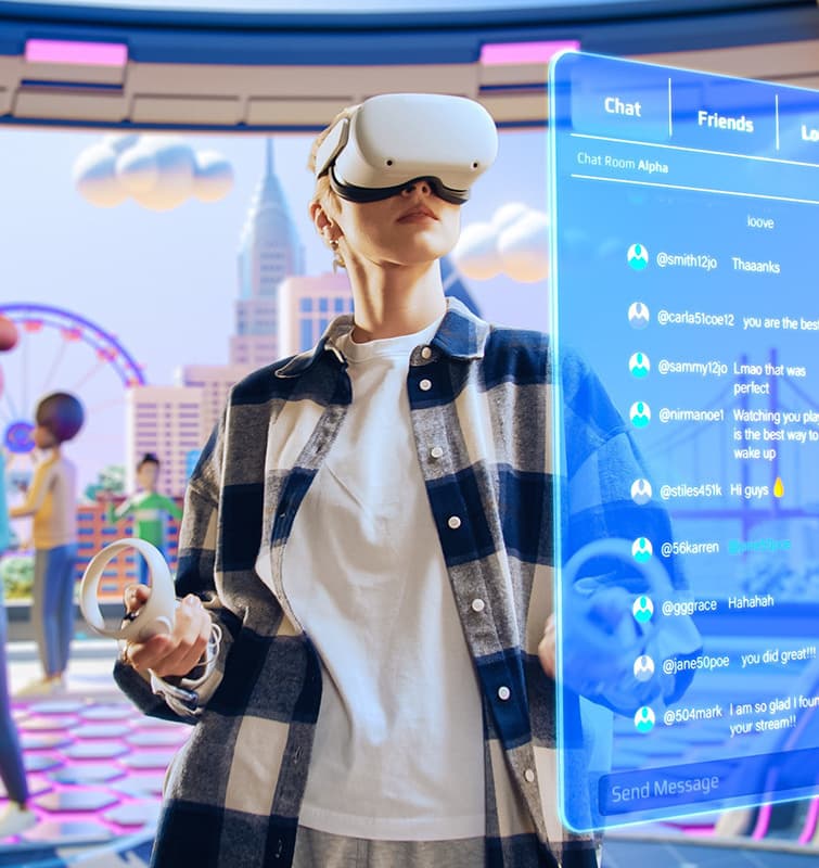 3D技術を駆使したリアルVRから、メタバースシステム開発まであらゆる多機能なVRコンテンツ制作に対応します。UNITY、UnrealEngine4等の最新ゲーム開発環境で制作します。大人気のOculus quest2,htc VIVEproその他VRデバイスに対応します。